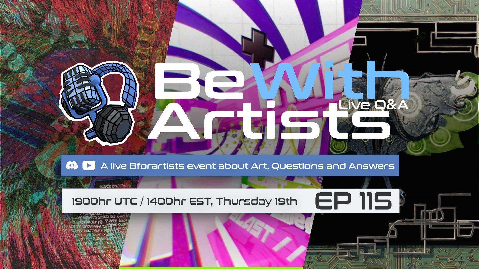 This episode is a kickoff for Season 3 of **Be With Artists**, a live community questions and answers about art event - with a special guest Cody Gindy, an NPR enthusiast from CTRL+ART+DEL art community,joining to celebrate Bforartists' 10th Birthday and a special announcement!Tune in live on Youtube and Discord.